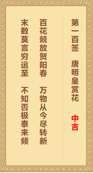 - 黄大仙灵签第一百签,唐明皇赏花,黄大仙灵签第100签解签