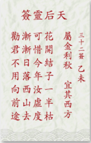 妈祖灵签第三十二签,属金利秋宜其西方,妈祖灵签第32签解签