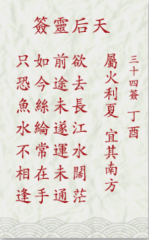 妈祖灵签第三十四签,属火利夏宜其南,妈祖灵签第34签解签