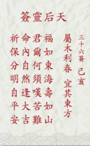 妈祖灵签第三十六签,属木利春宜其东方,妈祖灵签第36签解签