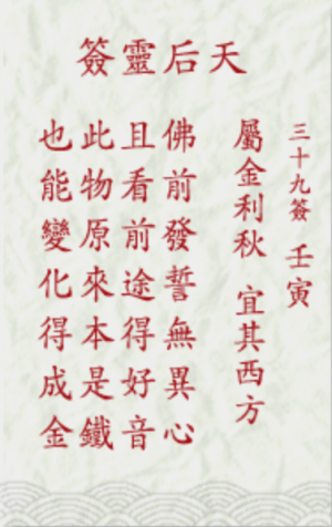 妈祖灵签第三十九签,属金利秋宜其西方,妈祖灵签第39签解签