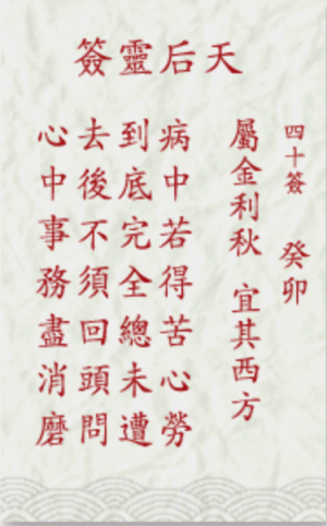 妈祖灵签第四十签,属金利秋宜其西方,妈祖灵签第40签解签
