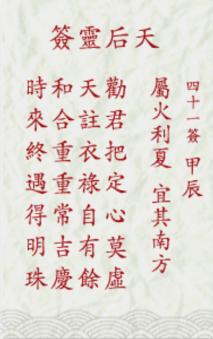 妈祖灵签第四十一签,属火利夏宜其南方,妈祖灵签第41签解签