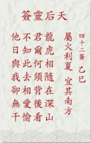妈祖灵签第四十二签,属火利夏宜其南方,妈祖灵签第42解签