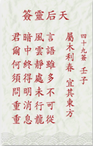妈祖灵签第四十九签,属木利春宜其东方,妈祖灵签第49签解签