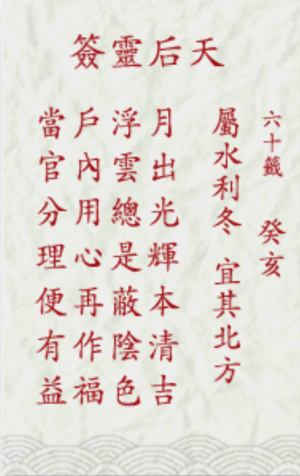- 妈祖灵签第六十签,属水利冬宜其北方,妈祖灵签第60签解签