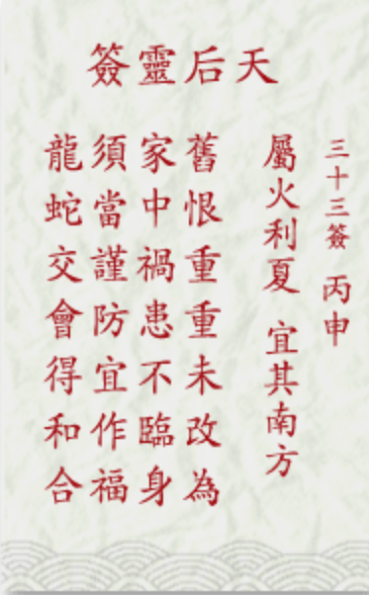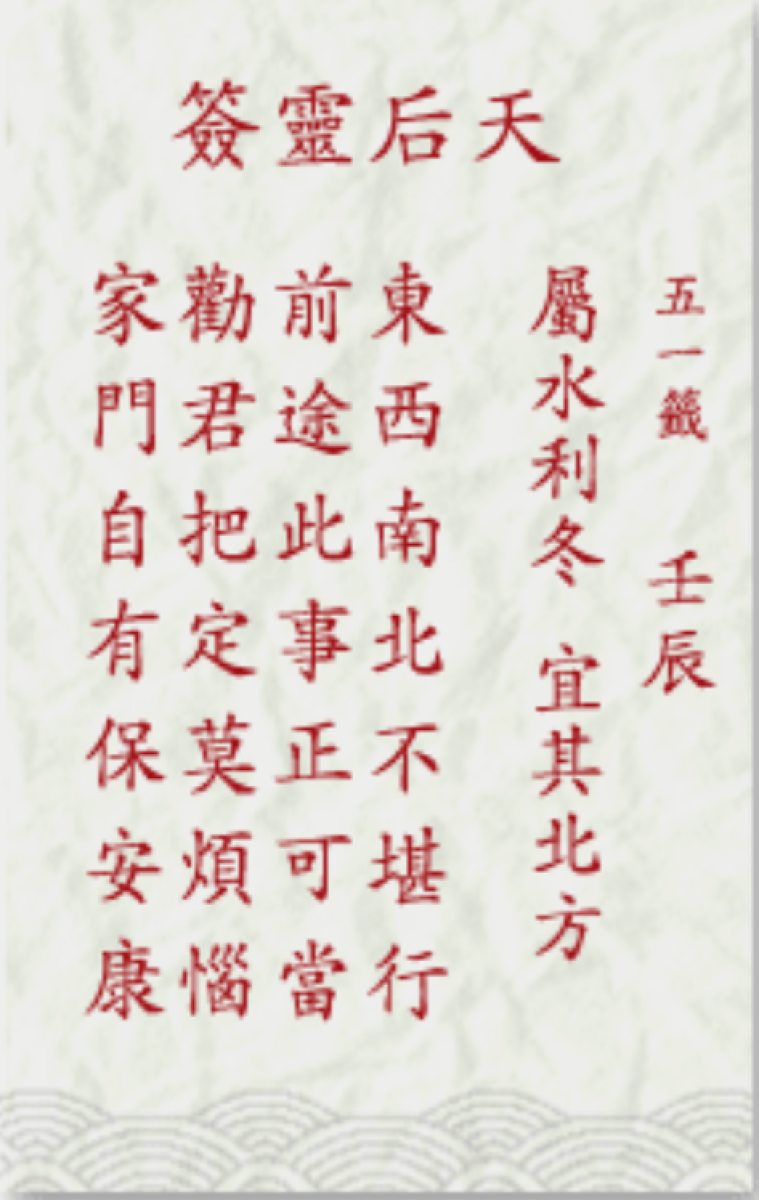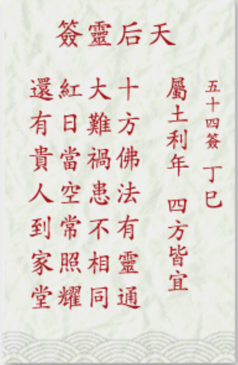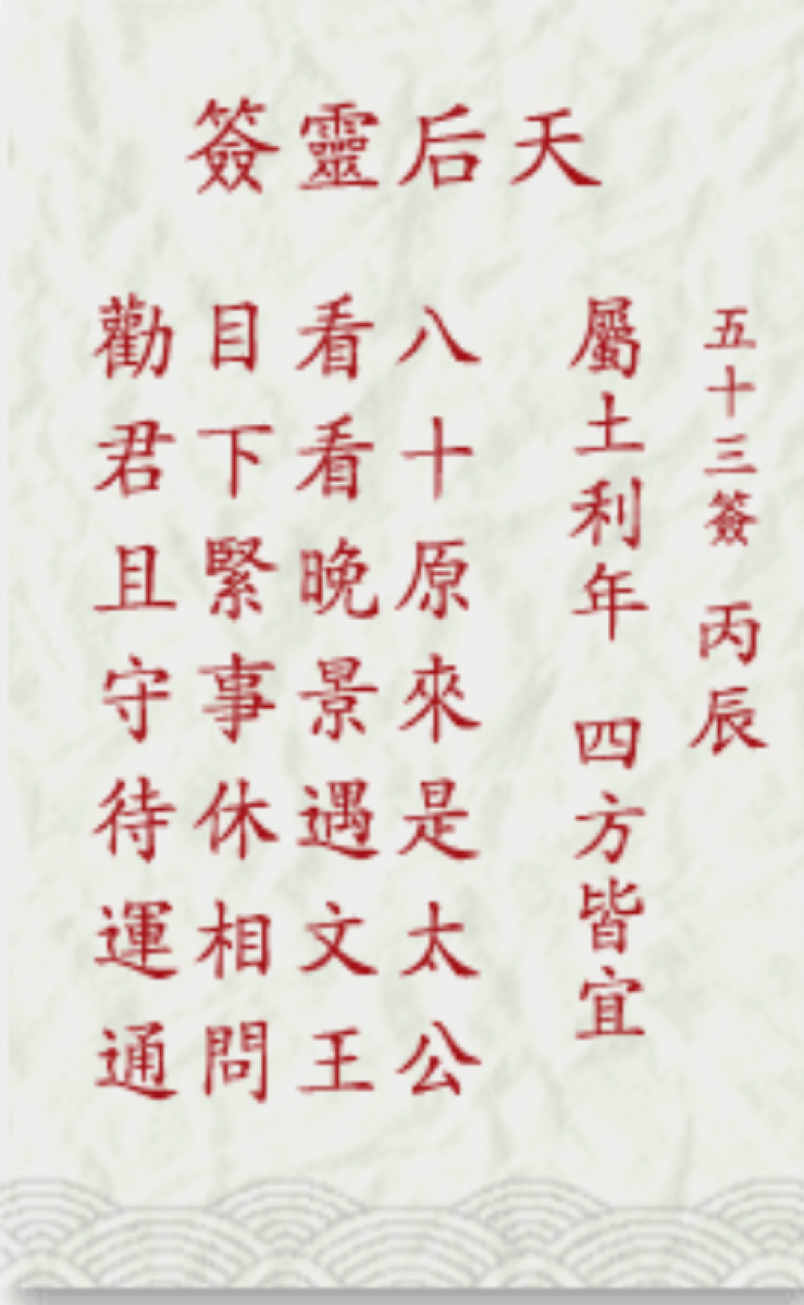 妈祖灵签第五十三签: 丙辰 签题:壬辰 签文看君来问心中事 积善之家庆有余 ...