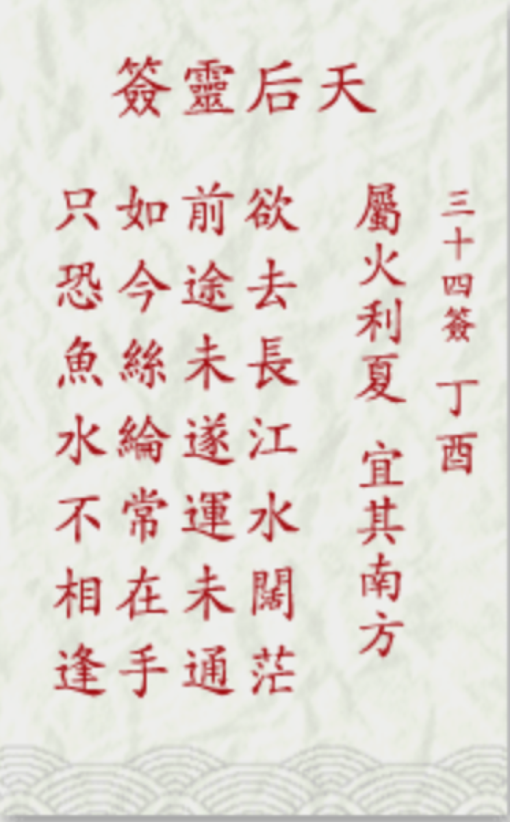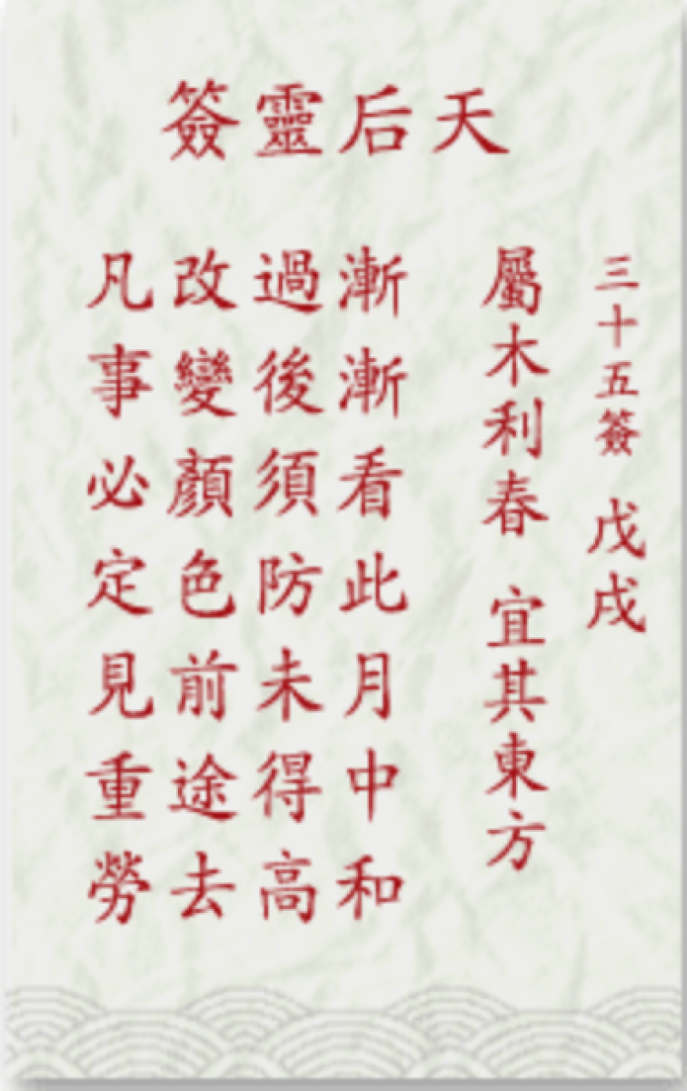 妈祖灵签三十五签: 戊戌 签题:戊戌 签文此事何须用心机 前途变怪自然知 看 ...