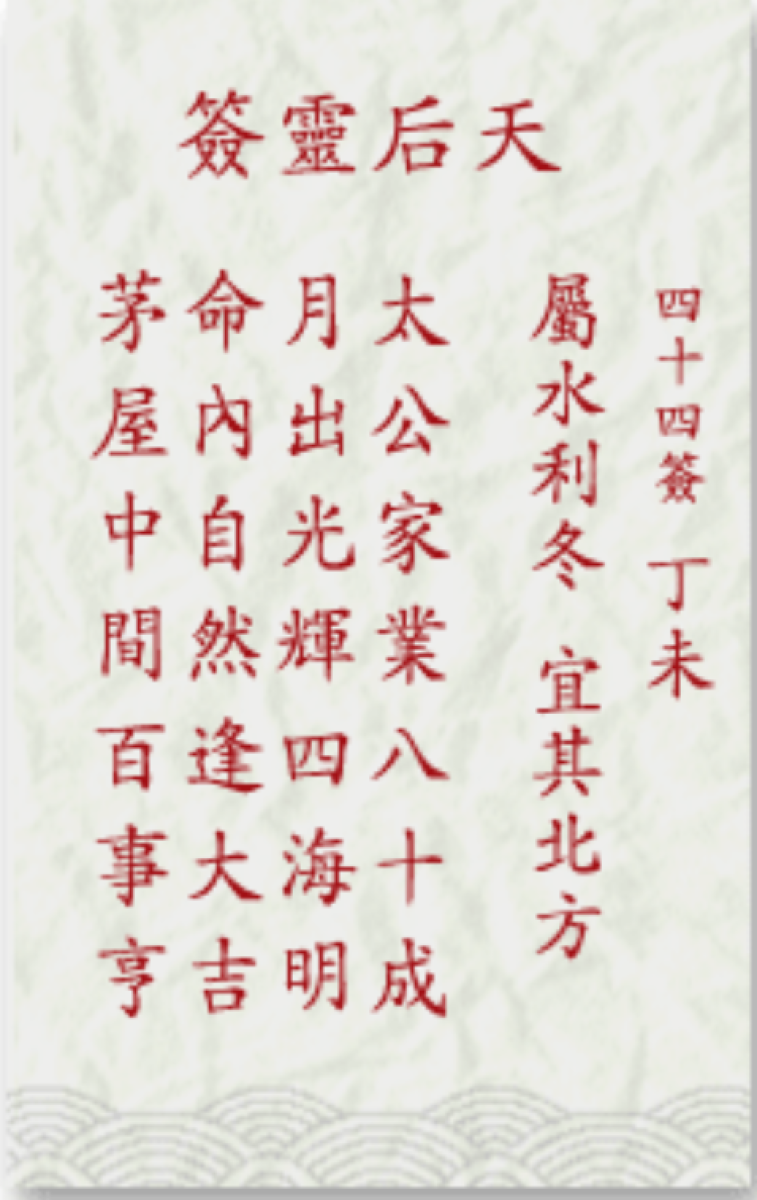 妈祖灵签第四十四签: 辛午 签题:丁未 签文客到前途多得利 君尔何故两相疑 ...