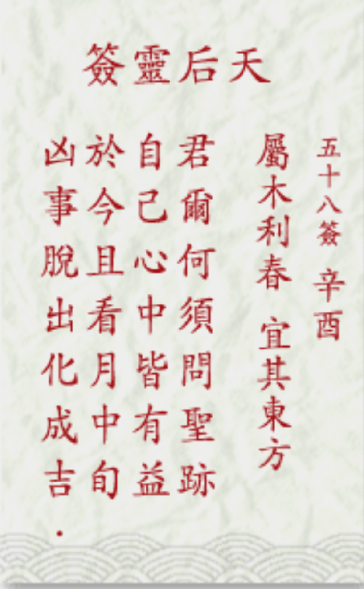 妈祖灵签第五十九签: 壬戌 签题:癸巳 签文有心作福莫迟疑 求名清吉正当时 ...