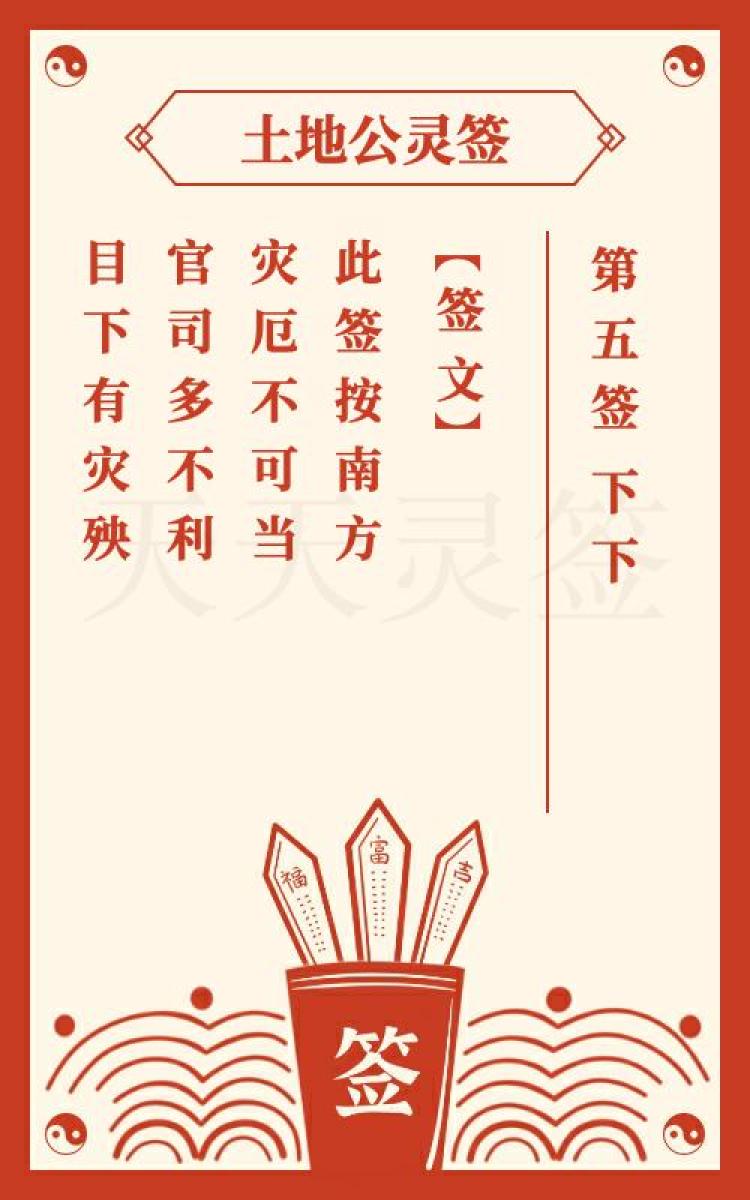 土地公灵签第五签解签土地公灵签第5签 下下签签诗此签按南方,灾厄不可当, ...