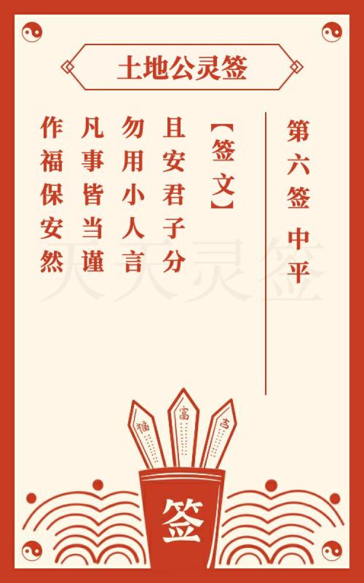 土地公灵签第六签解签土地公灵签第6签 中平签签诗且安君子分,勿用小人言, ...