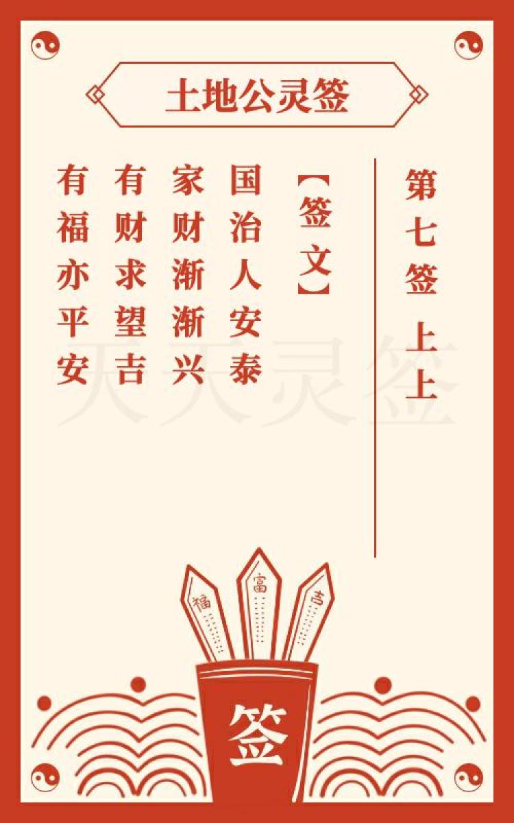 土地公灵签第七签解签土地公灵签第7签 上上签签诗国治人安泰,家财渐渐兴, ...