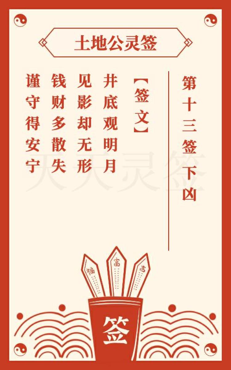 土地公灵签第十三签解签土地公灵签第13签 下凶签签诗井底观明月,见影却无形 ...