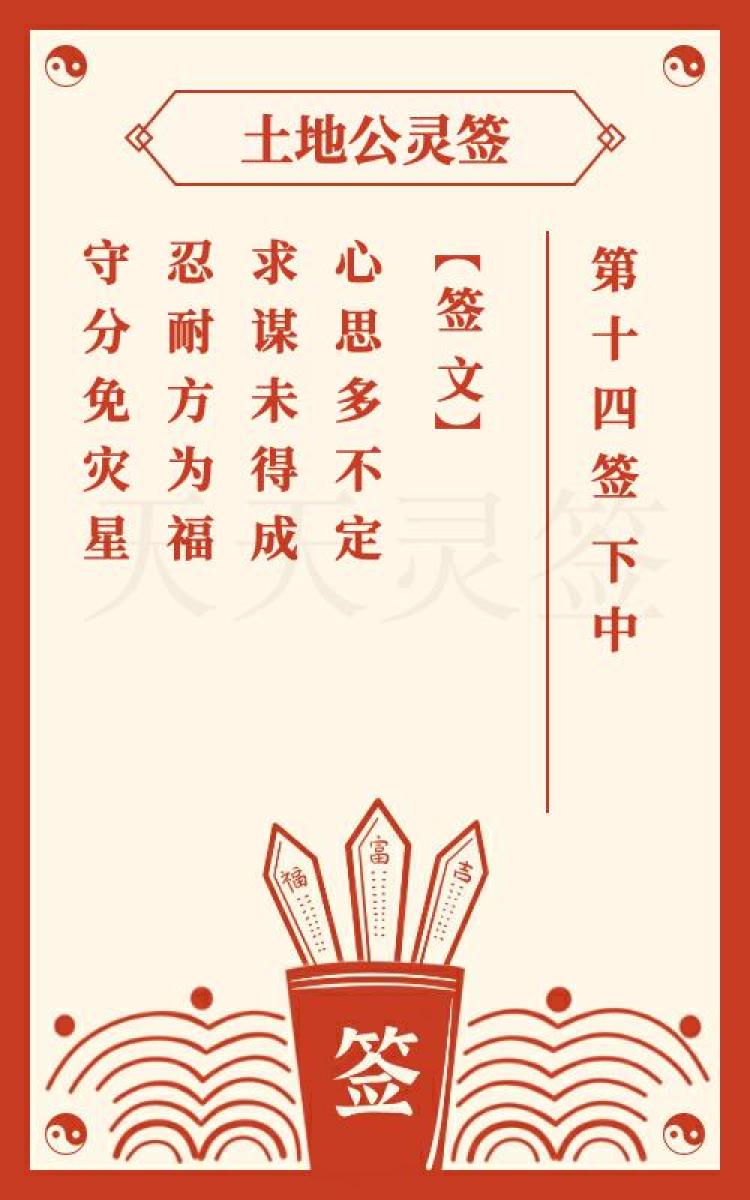 土地公灵签第十四签解签土地公灵签第14签 下中签签诗心思多不定,求谋未得成 ...