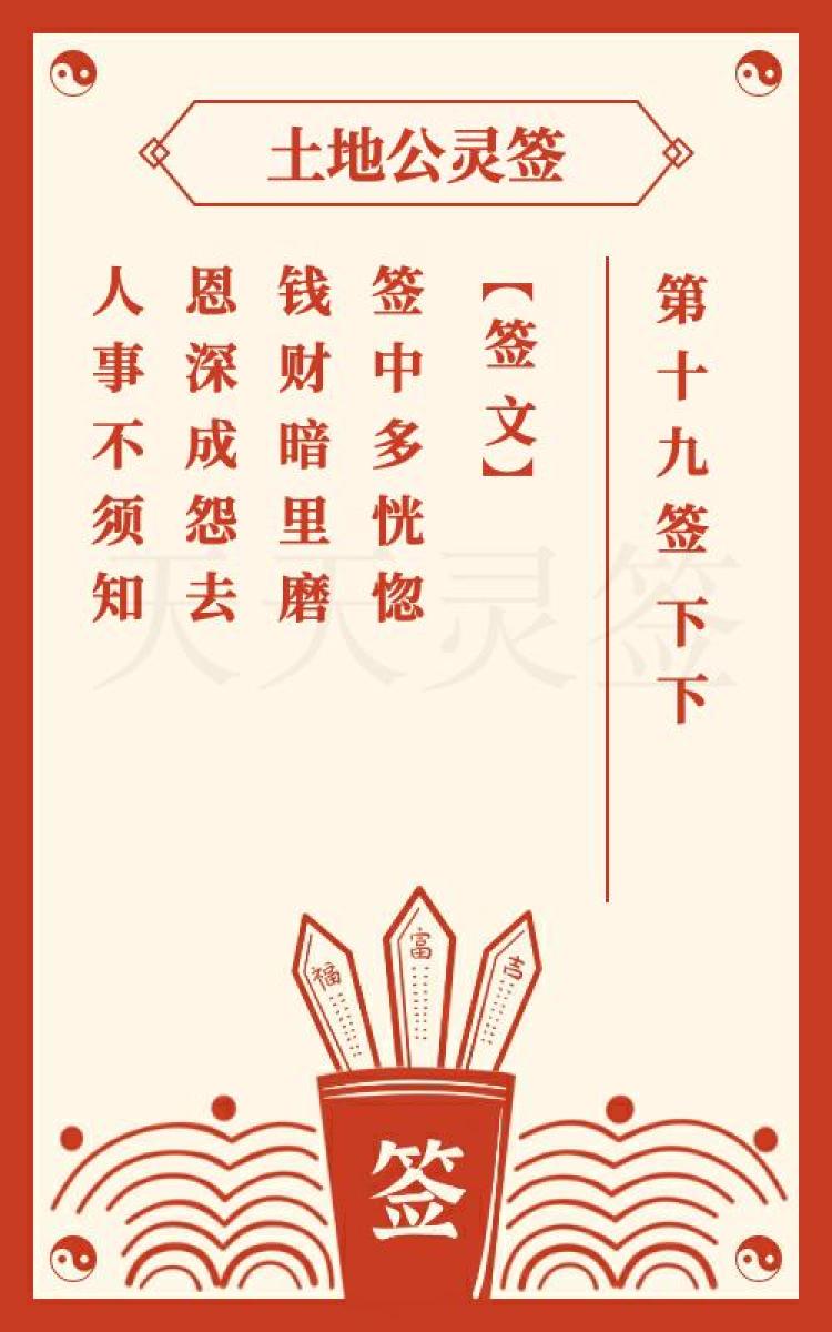 土地公灵签第十九签解签土地公灵签第19签 下下签签诗签中多恍惚,钱财暗里磨 ...