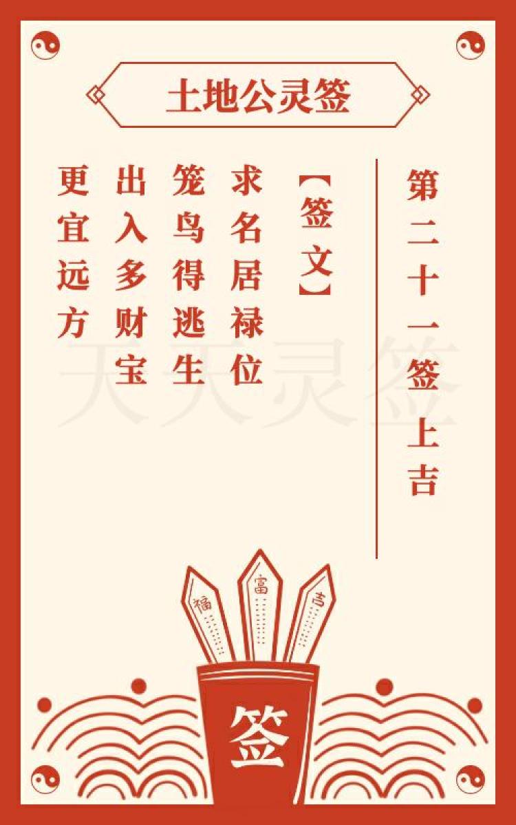 土地公灵签第二十一签解签土地公灵签第21签 上吉签签诗求名居禄位,笼鸟得逃 ...