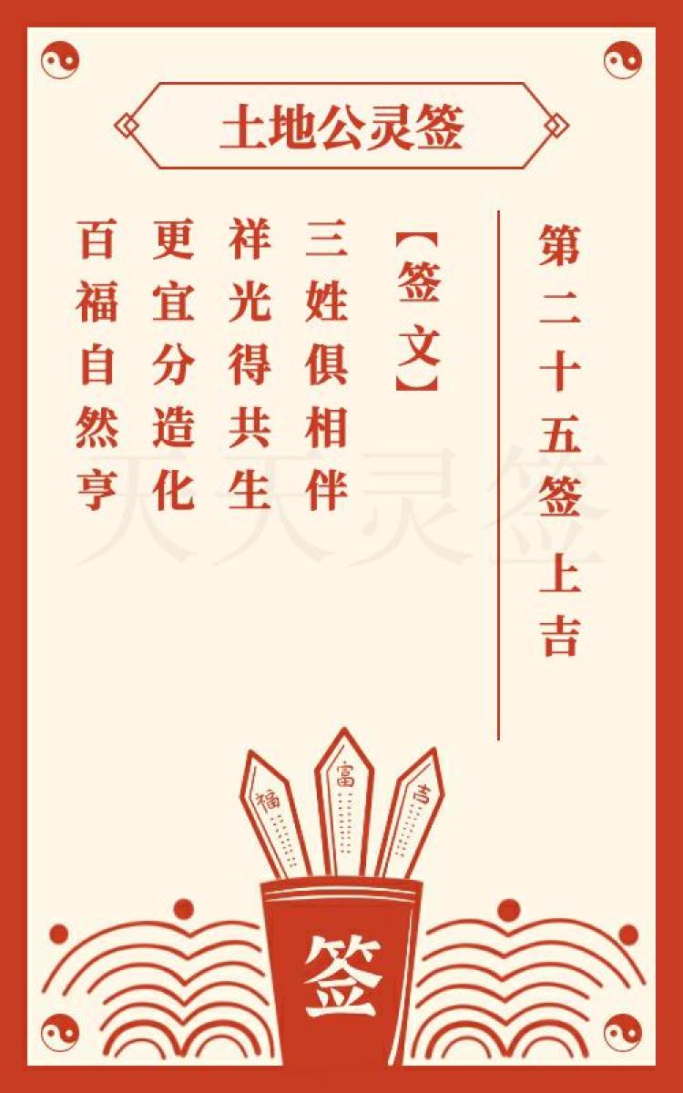 土地公灵签第二十五签解签土地公灵签第25签 上吉签签诗三姓俱相伴,祥光得共 ...
