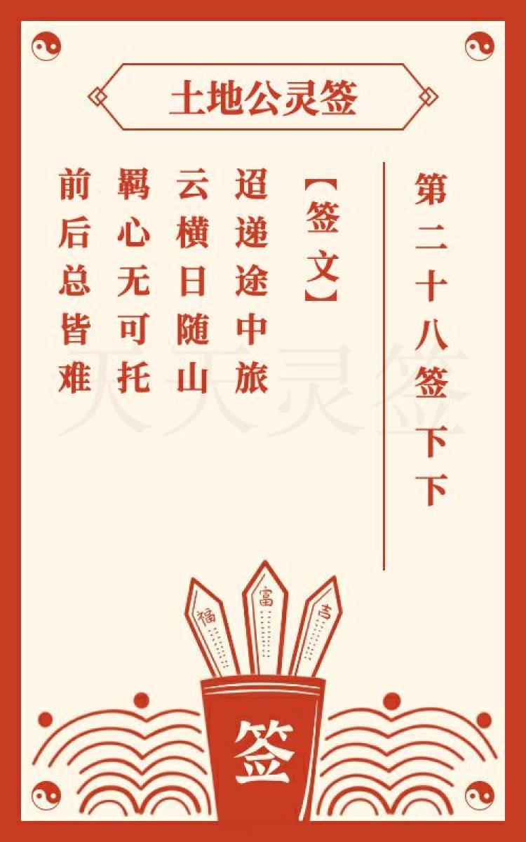 土地公灵签第二十八签解签土地公灵签第28签 下下签签诗迢递途中旅,云横日随 ...