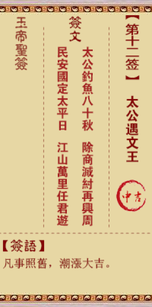 玉帝灵签第十二签,太公遇文王,玉帝灵签第12签解签