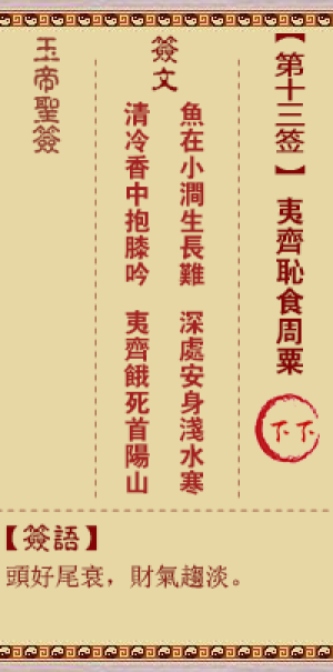 玉帝灵签第十三签,夷齐耻食周粟,玉帝灵签第13签解签