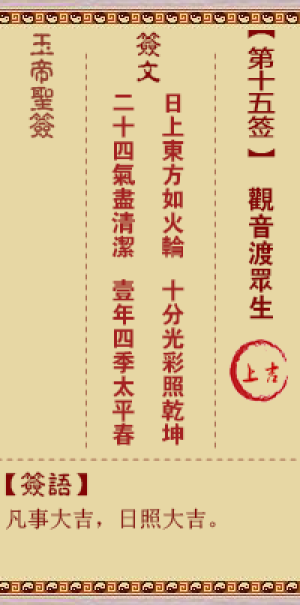 玉帝灵签第十五签,观音渡众生,玉帝灵签第15签解签