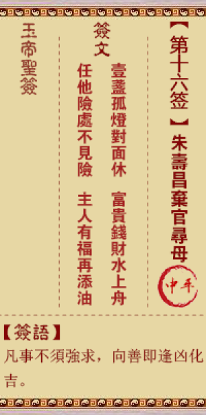 玉帝灵签第十六签,朱寿昌弃官寻母,玉帝灵签第16签解签
