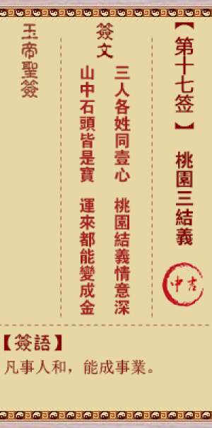玉帝灵签第十七签,桃园三结义,玉帝灵签第17签解签