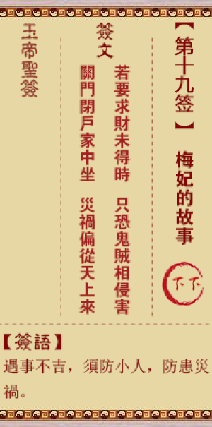 玉帝灵签第十九签,梅妃的故事,玉帝灵签第19签解签