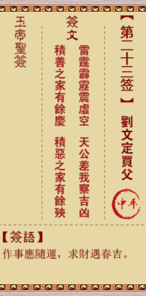 玉帝灵签第二十三签,刘文定买父,玉帝灵签第23签解签