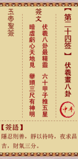 玉帝灵签第二十四签,伏羲画八卦,玉帝灵签第24签解签