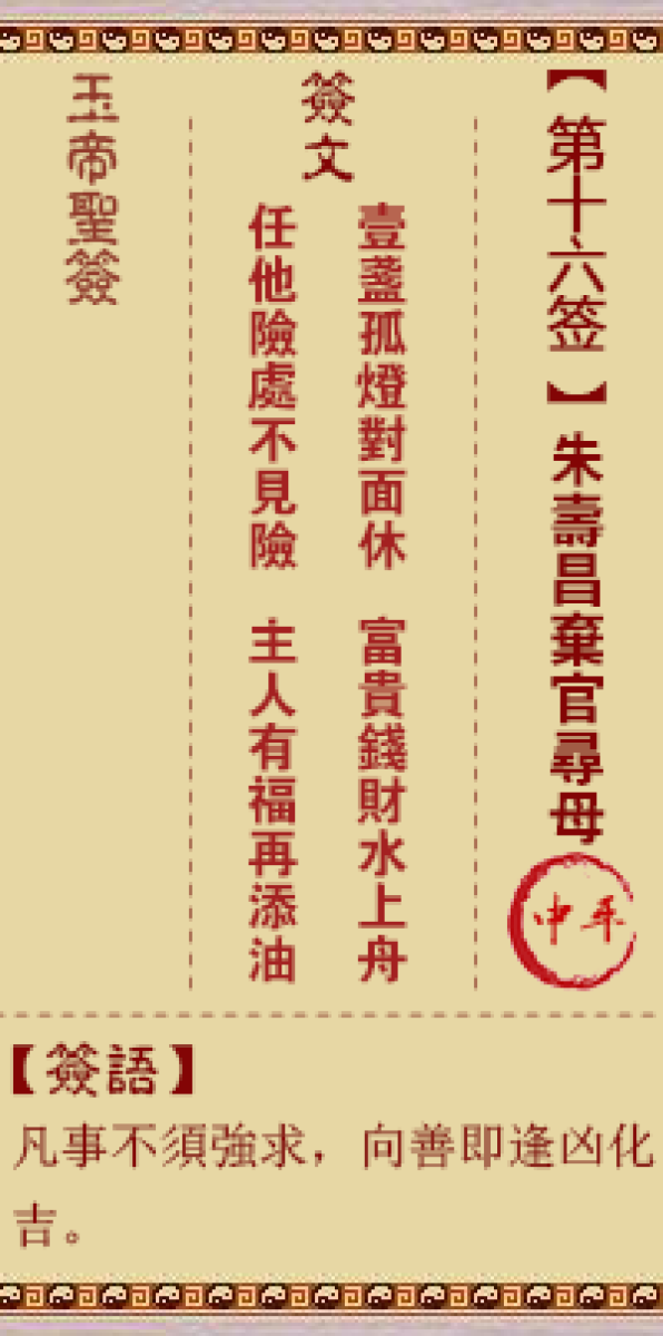 玉帝灵签第十六签解签乙己笑笑阴朱寿昌弃官寻母中平诗文一盏孤灯对面休,富 ...