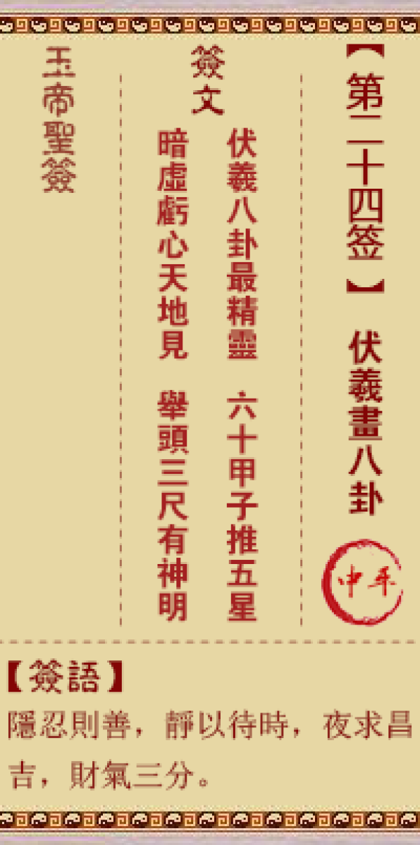 玉帝灵签第二十四签解签丙丁阴笑笑伏羲画八卦中平诗文伏羲八卦最精灵,六十 ...