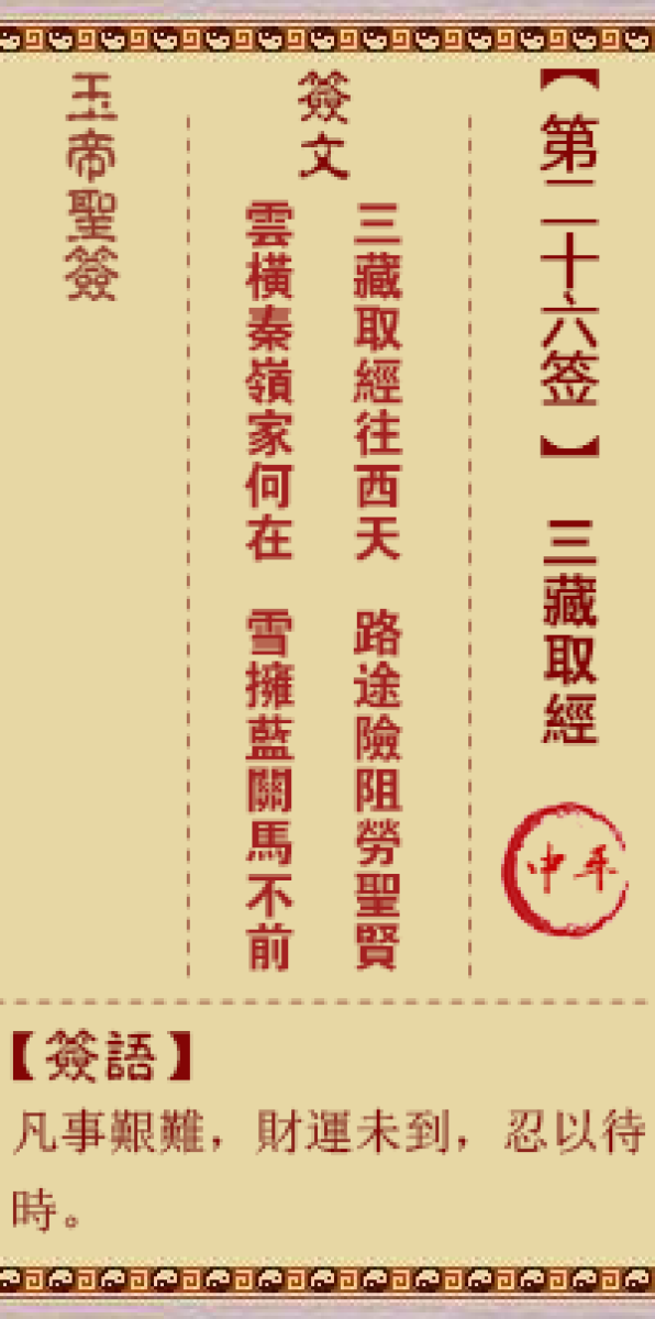 玉帝灵签第二十六签解签丙己阴阴圣三藏取经中平诗文三藏取经往西天,路途险 ...