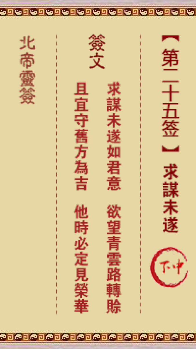 北帝灵签第二十五签解签北帝灵签第二十五签:求谋未遂 下中签文求谋未遂如君 ...