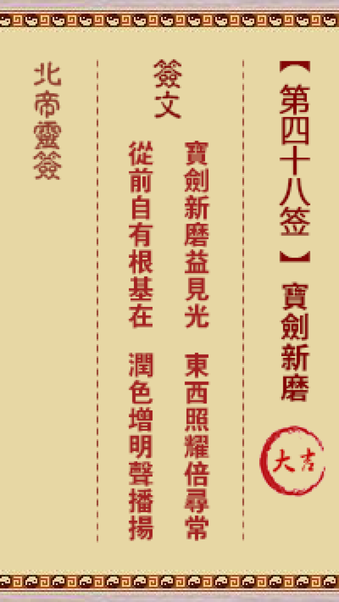 北帝灵签第四十八签解签北帝灵签第四十八签:宝剑新磨 大吉签文宝剑新磨益见 ...