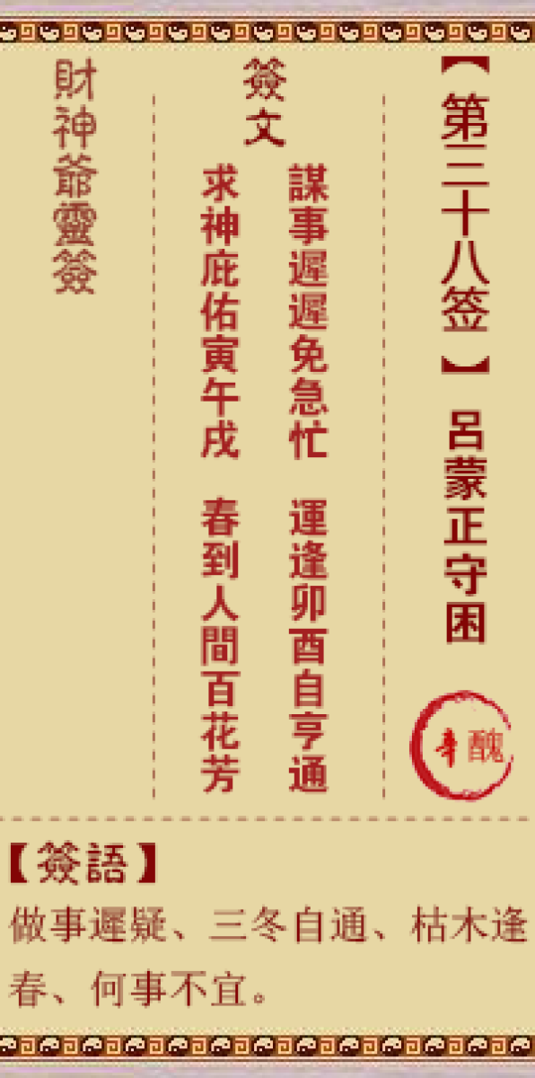财神灵签第三十八签解签三八签、辛丑签、吕蒙正守困寅午戌年多阻滞、亥子丑 ...