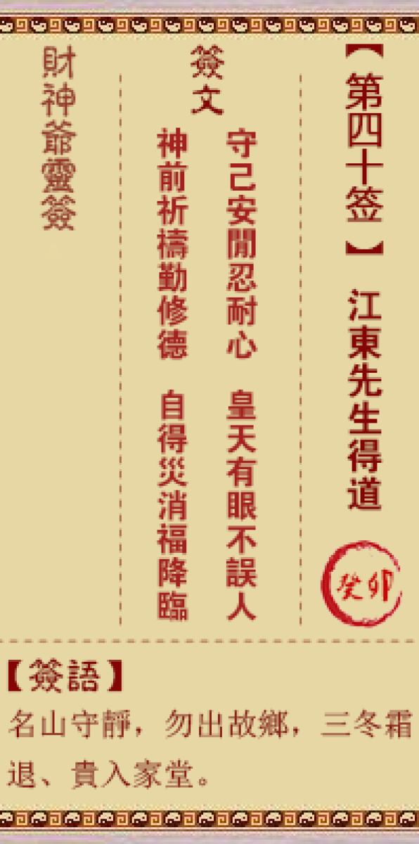 财神灵签第四十签解签四十签、癸卯签、江东先生得道君尔何须离故乡、名山暂 ...