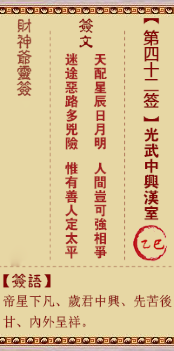 财神灵签第四十二签解签四二签、乙巳签、光武中兴汉室上天降下紫微星、尘世 ...