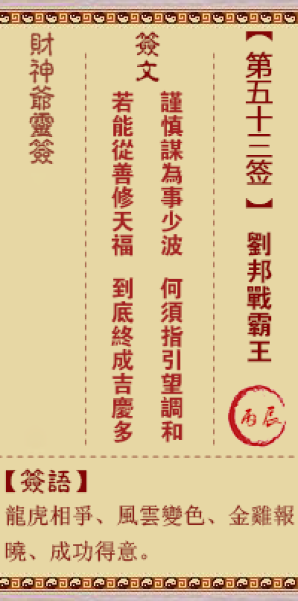 财神灵签第五十三签解签五三签、丙辰签、刘邦战霸王龙争虎斗变风云、又听金 ...