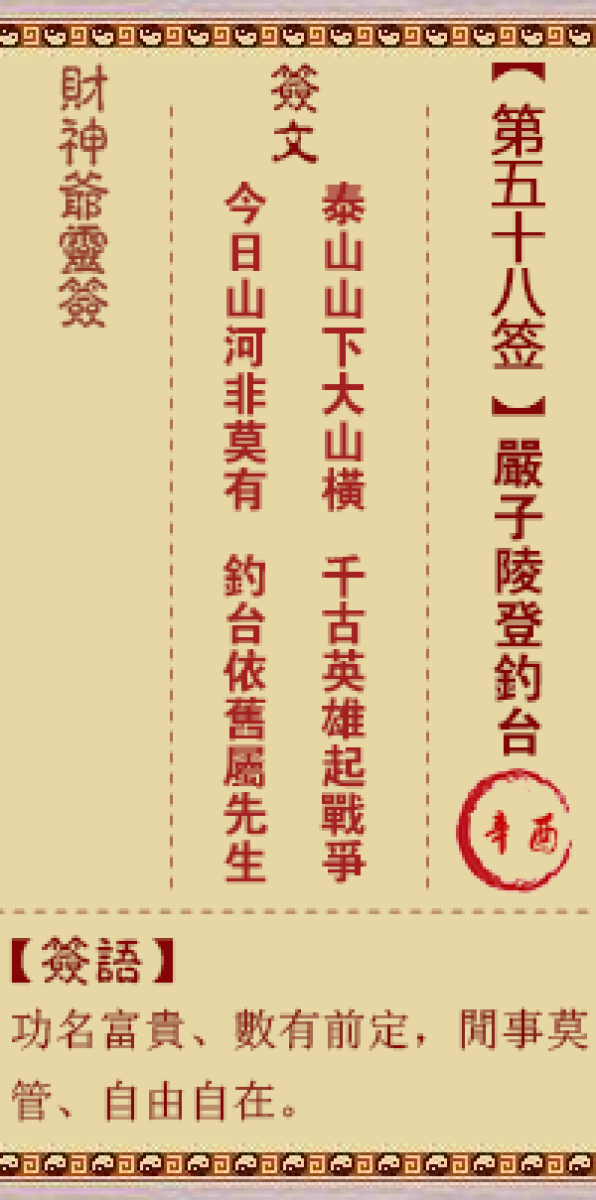 财神灵签第五十八签解签五八签、辛酉签、严子陵登钓台画饼充饥总是空、任南 ...