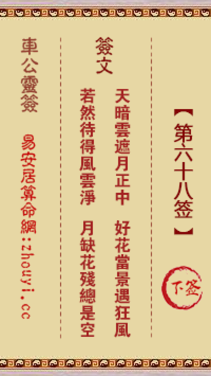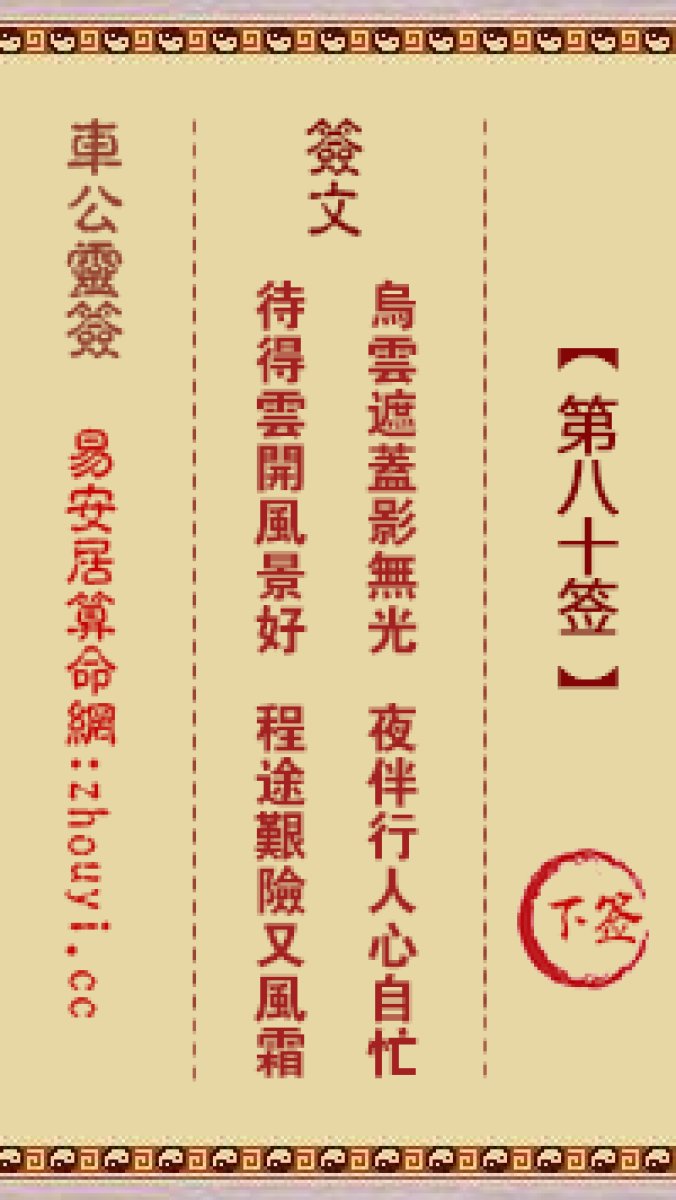 车公灵签第八十签解签车公灵签 第八十签:下签签文:乌云遮盖影无光,夜伴行 ...