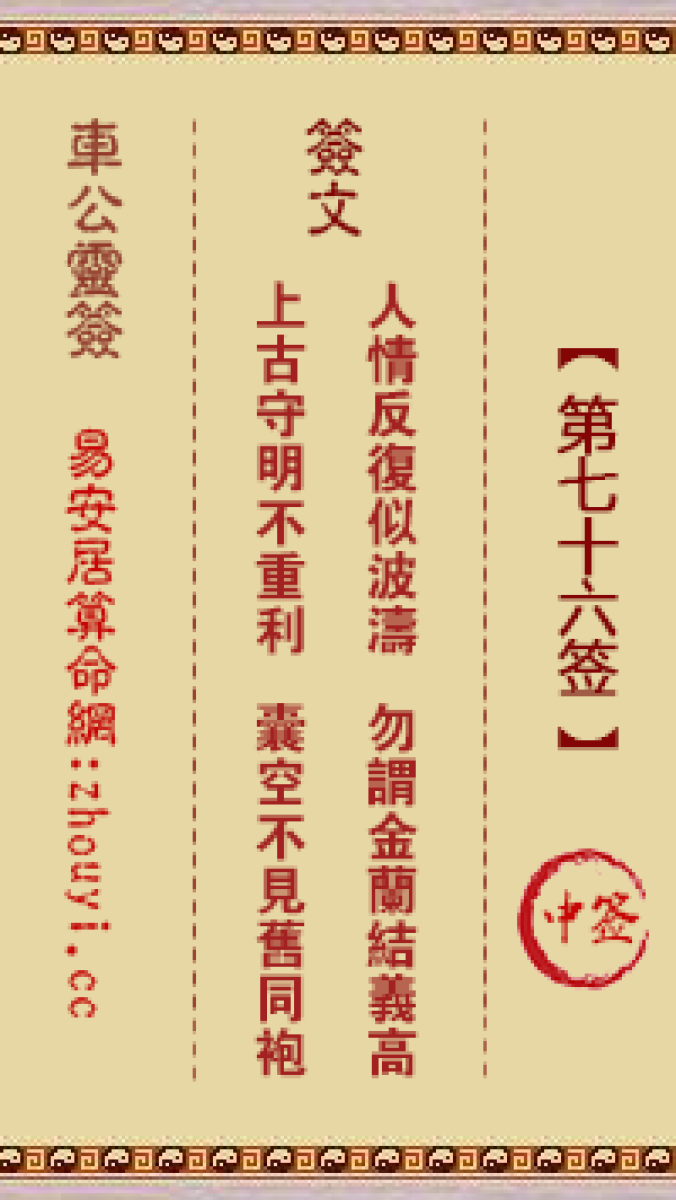 车公灵签第七十六签解签车公灵签 第七十六签:中签签文:人情反复似波涛,勿 ...
