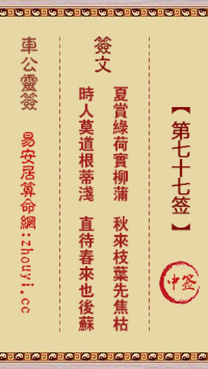 车公灵签第七十七签解签车公灵签 第七十七签:中签签文:夏赏绿荷实柳蒲,秋 ...