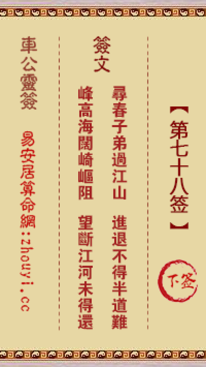 车公灵签第七十八签解签车公灵签 第七十八签:下签签文:寻春子弟过江山,进 ...
