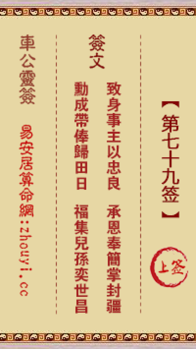 车公灵签第七十九签解签车公灵签 第七十九签:上签签文:致身事主以忠良,承 ...
