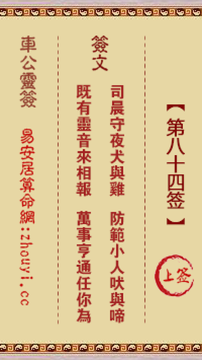 车公灵签第八十四签解签车公灵签 第八十四签:上签签文:司晨守夜犬与鸡,防 ...