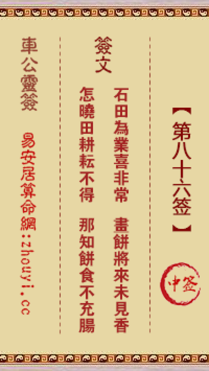 车公灵签第八十六签解签车公灵签 第八十六签:中签签文:石田为业喜非常,画 ...
