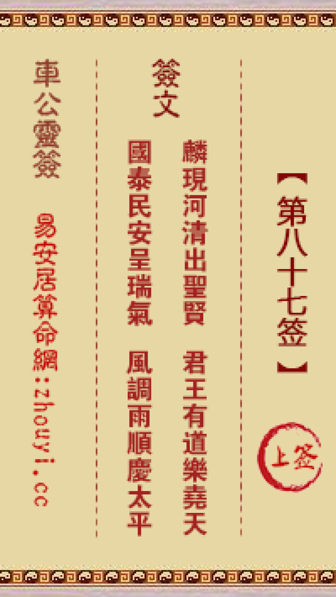 车公灵签第八十七签解签车公灵签 第八十七签:上签签文:麟现河清出圣贤,君 ...