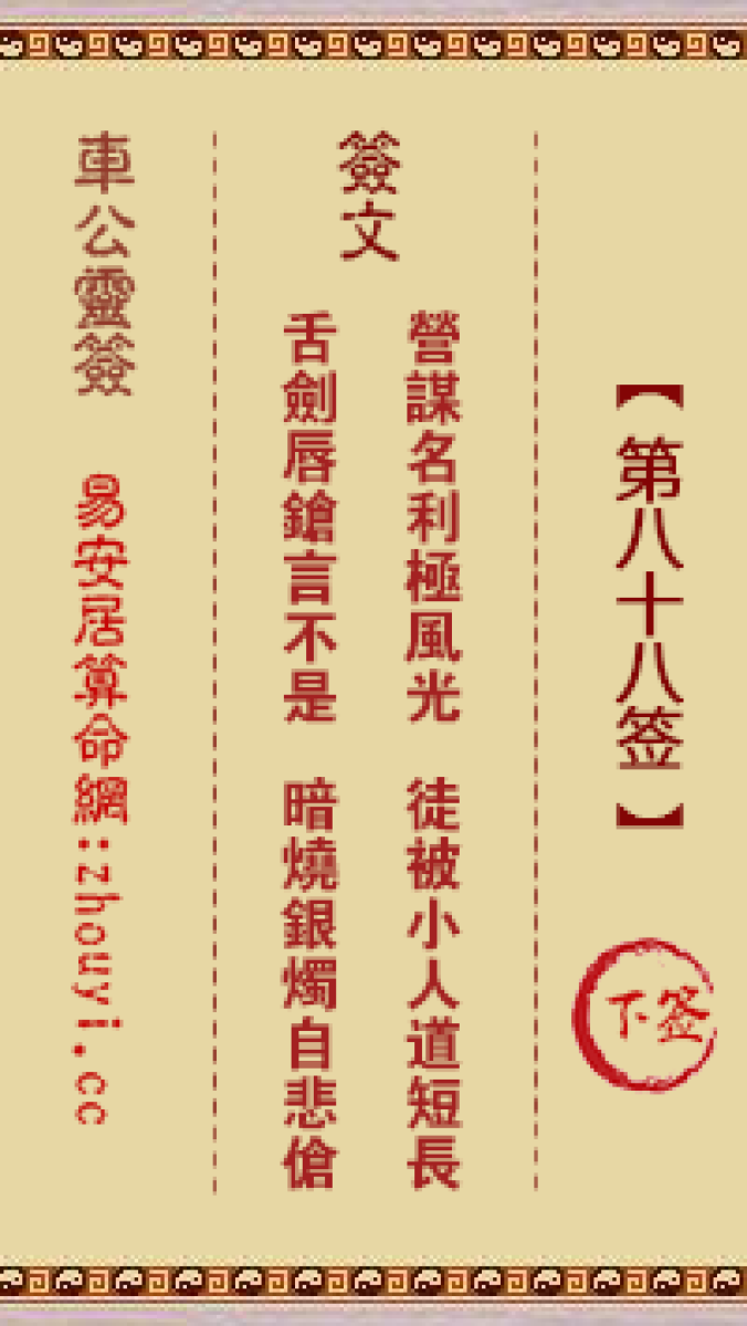 车公灵签第八十八签解签车公灵签 第八十八签:下签签文:营谋名利极风光,徒 ...